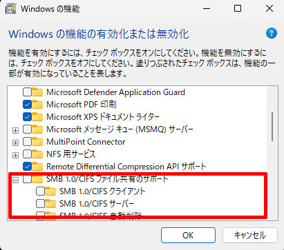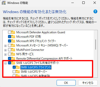 『SMB1.0/CIFS クライアント』を有効にする方法